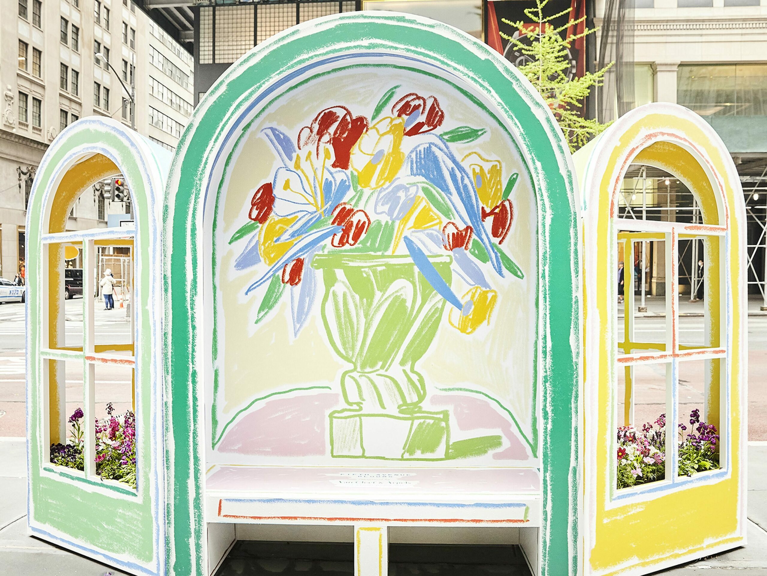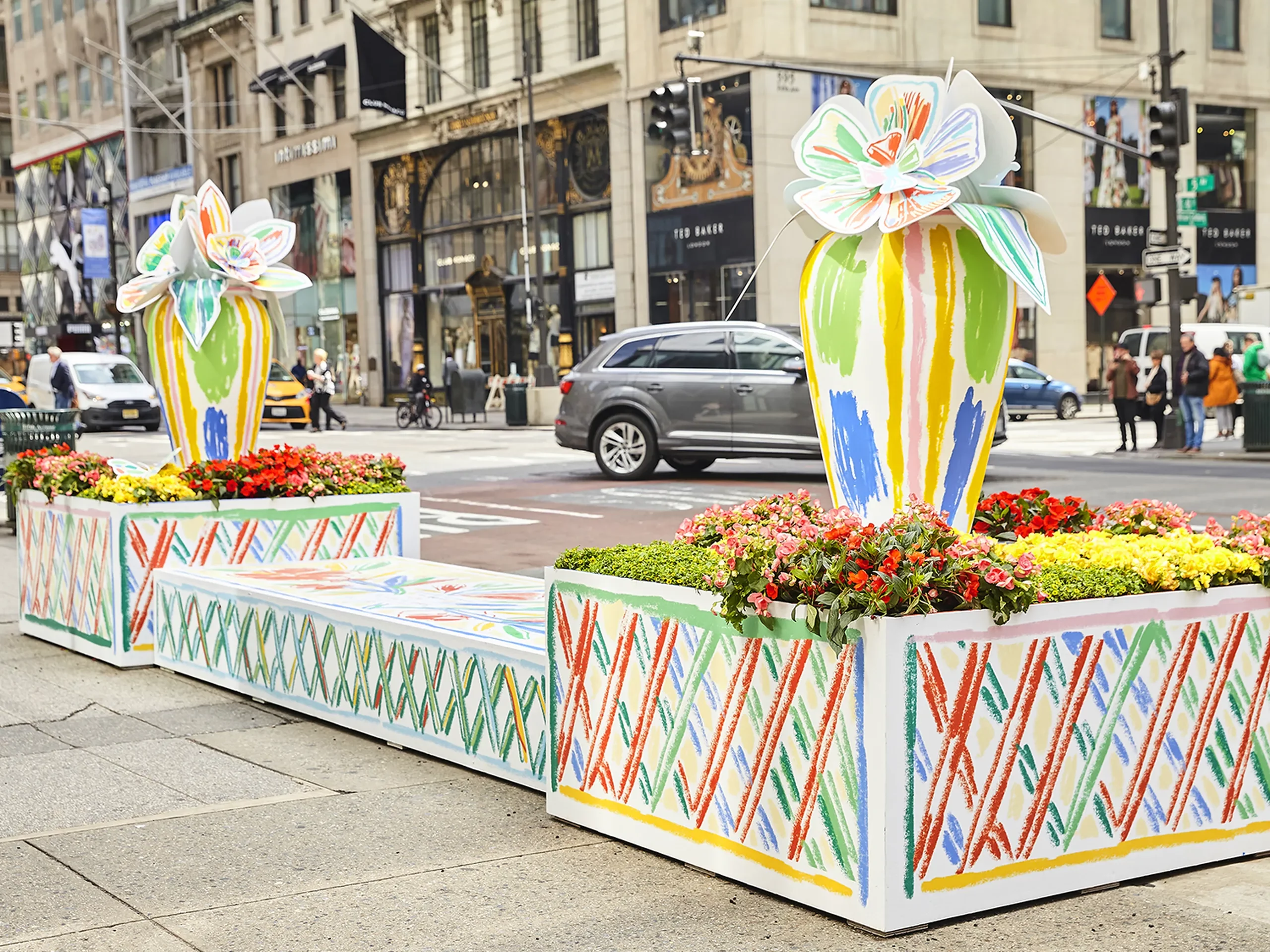 Twelve blocks along the Avenue transformed into a floral sketchbook created by French artist, Alexandre Benjamin Navet with fourteen colorful sculptures complimented by live flowers.